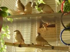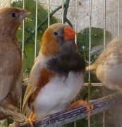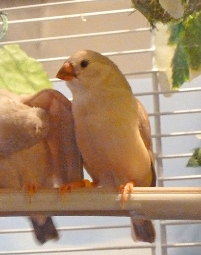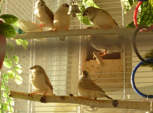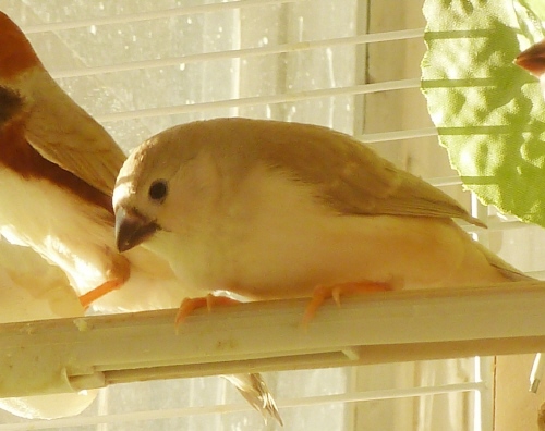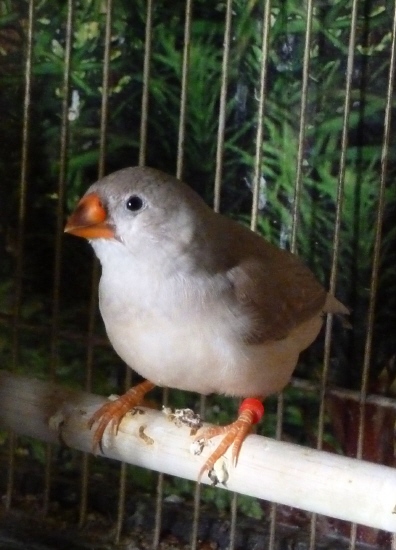 Глэдис - черногрудая палевая самка щепная на оранжевогрудых и чернощеких (красное кольцо на левой лапке):