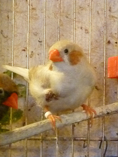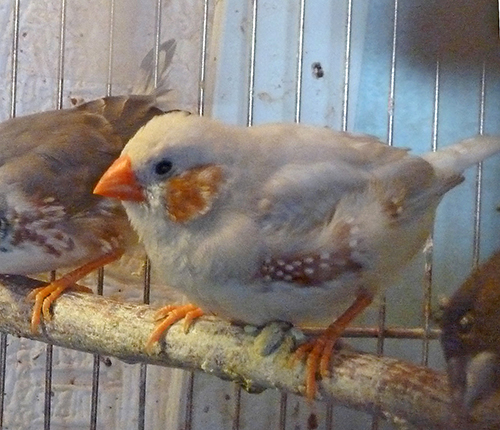 Арман - самец серый изабель щепный на черногрудых и оранжевогрудых (белое кольцо на правой лапке):