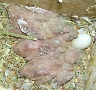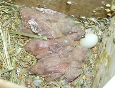 Гнездование №49: Птенцы от пары Лютик и Роза, рождение 28.03.14 (3 птенца)