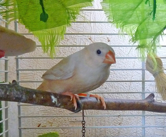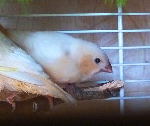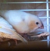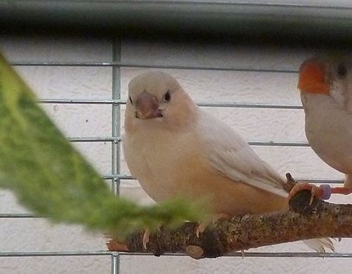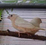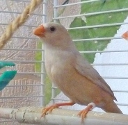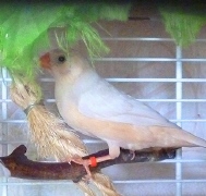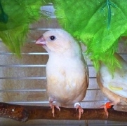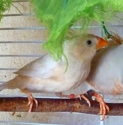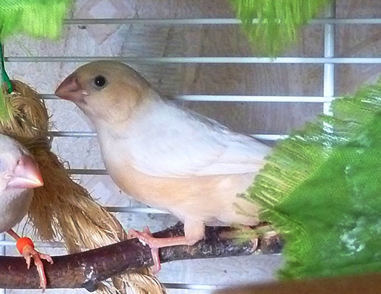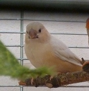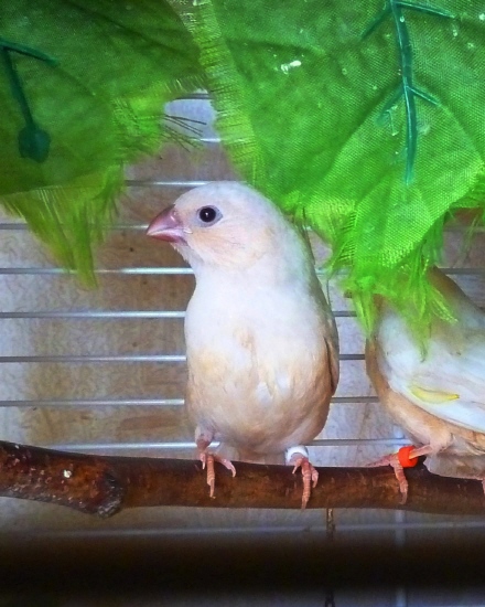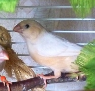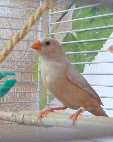 Оливия - черногрудая оранжевогрудая самка палевый изабель (белое кольцо на левой лапке):