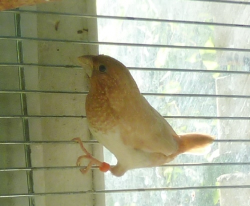 Лана - палевая осветленная самка (оранжевое кольцо на левой лапке):