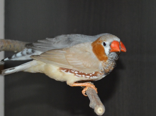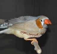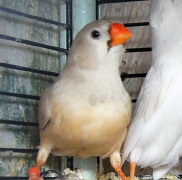 Лайм - крупный черногрудый оранжевогрудый самец палевый изабель (оранжевое кольцо на правой лапке):