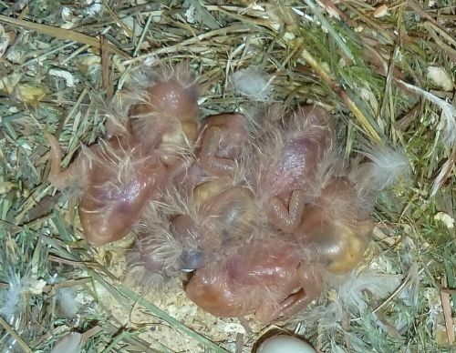 Гнездование №68: Птенцы от пары Люпин и Маргоша, рождение 18.12.14 (4 птенца)