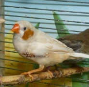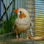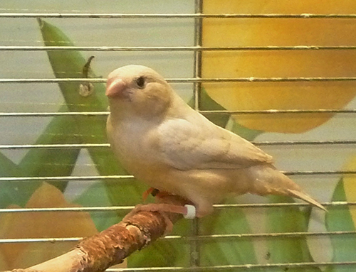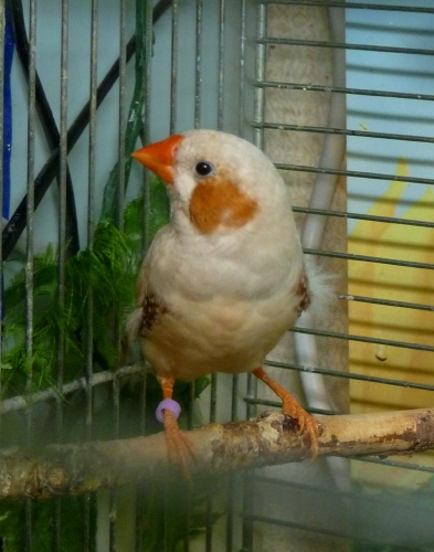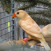Пола - самка оранжевогрудый палевый изабель щепная на черногрудых (коричневое кольцо на левой лапке):