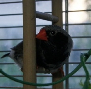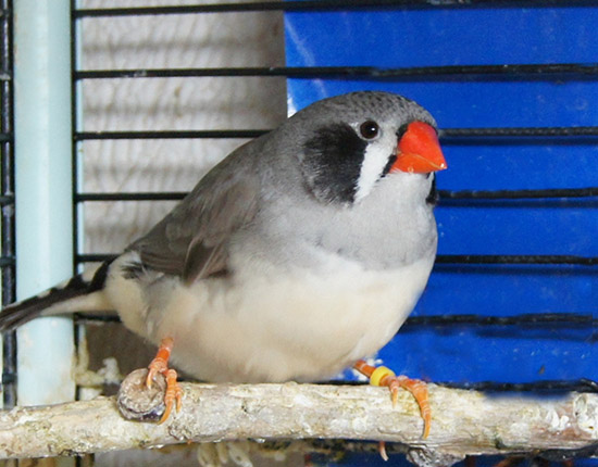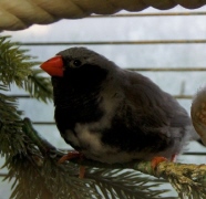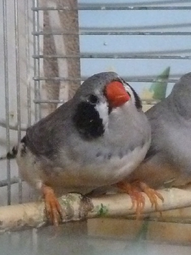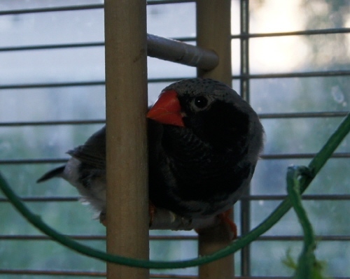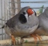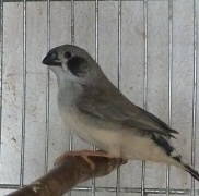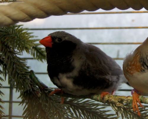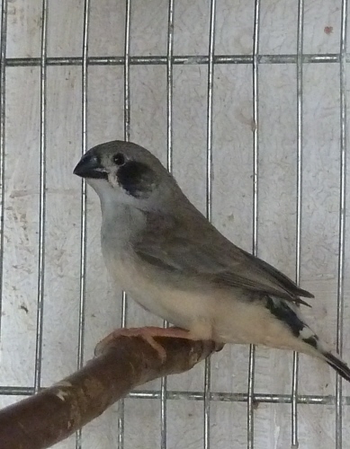 Барак - чернолицый чернощекий серый самец щепный на черногрудых (красное кольцо на правой лапке):