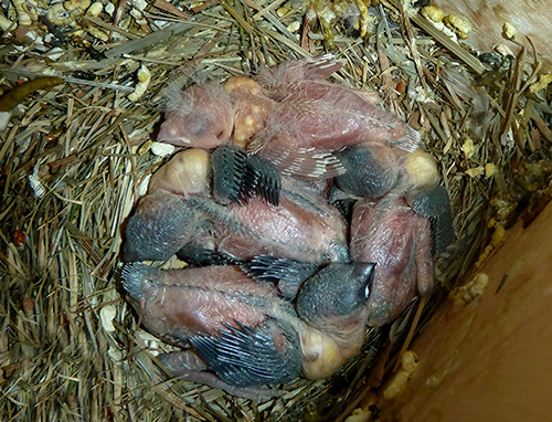 Гнездование №79: Птенцы от пары Тимоти и Аманда, рождение 23.05.15 (3 птенца)