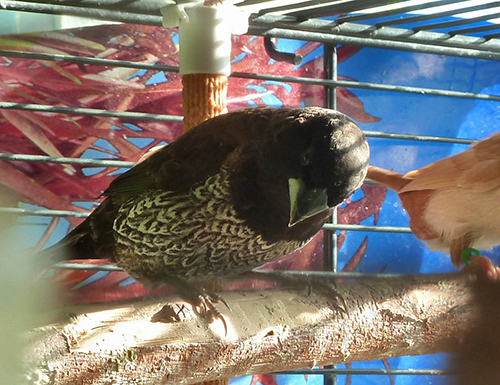 Роберто - крупный черно-коричневый самец (белое кольцо на левой лапке):