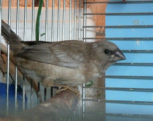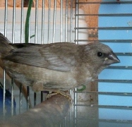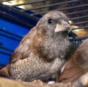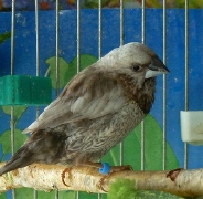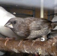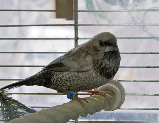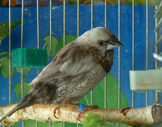 Лучано - жемчужный самец (голубое кольцо на правой лапке):
