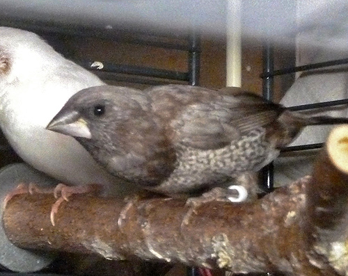 Патрик - жемчужный самец (белое кольцо на левой лапке):