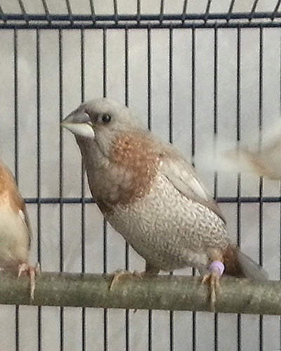 Ингрит - жемчужная самка (сиреневое кольцо на левой лапке):