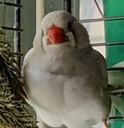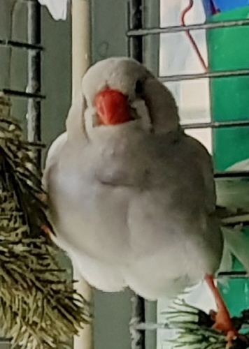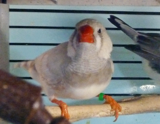 Корнелия - крупная чернощекая самка лайтбэк щепная на черногрудых (красное кольцо на правой лапке):