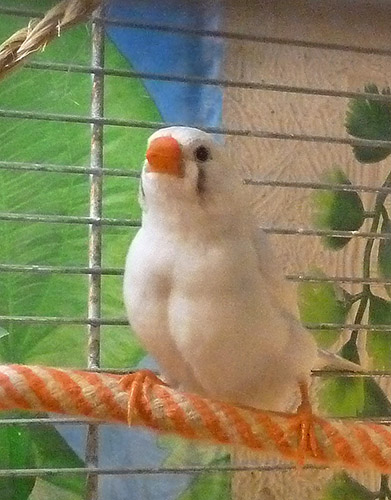 Белоснежка - крупная чернощекая самка палевый континентальный мармазет (оранжевое кольцо на левой лапке):