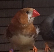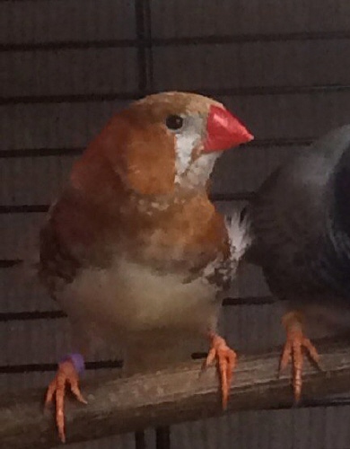 Кешью - крупный черногрудый оранжевогрудый самец палевый изабель (сиреневое кольцо на правой лапке):