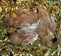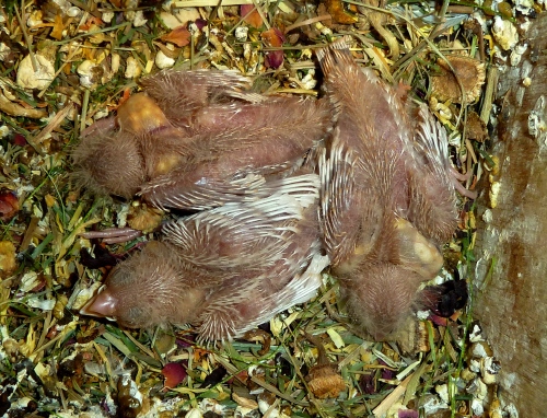 Гнездование №97: Птенцы от пары очень крупный черногрудый оранжевогрудый самец палевый изабель и Эйприл, рождение 17.12.15 (5 птенцов)