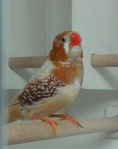 Крупный черногрудый оранжевогрудый самец палевый изабель (розовое кольцо на левой лапке):