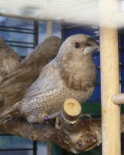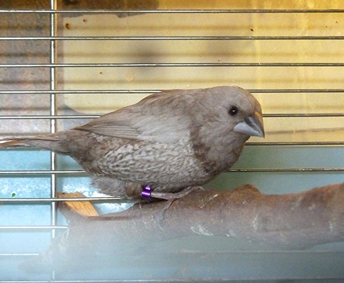 Фото Руфины (сиреневая клипса на правой ноге и черное металлическое кольцо на левой ноге):