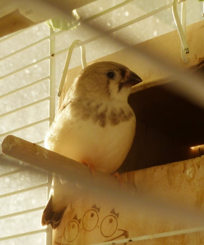 Фаина Фаина - черногрудая чернощекая палевая самка щепная на оранжевогрудых |