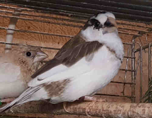 пестрый самец бело-шоколадный пестрые сэдлбэк панда (рожден в апреле 2021 г.)
