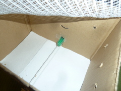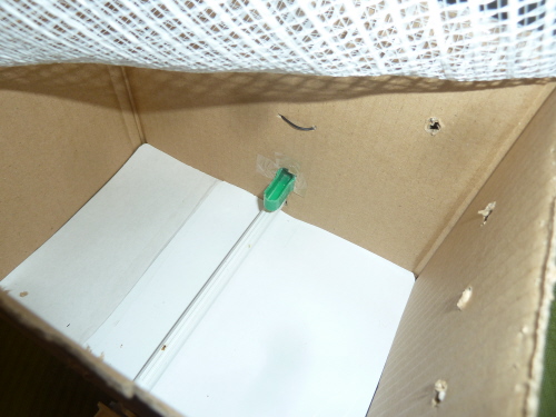 Верх коробки надо затянуть сеткой для хорошей вентиляции и освещения коробки - в темноте птицы не найдут корм и воду. Можно сделать сетку еще и сбоку или же проделать дополнительные отверстия для доступа воздуха.