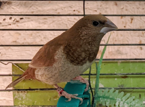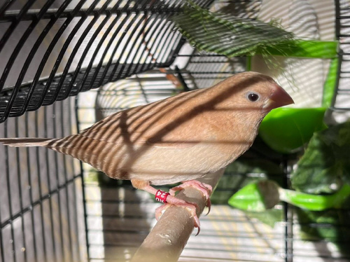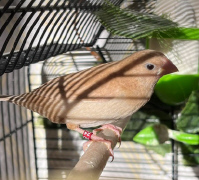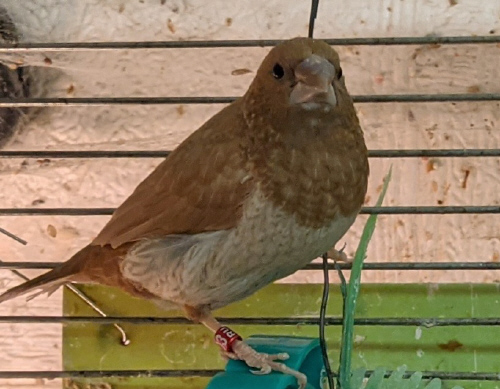 Фото Яшмы (фиолетовое несъемное металлическое кольцо 2024 г. на правой лапке):