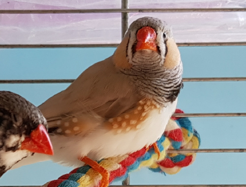 ![]() Меган - чернолицая черногрудая серая самка щепная на изабель, чернощеких и оранжевогрудых |