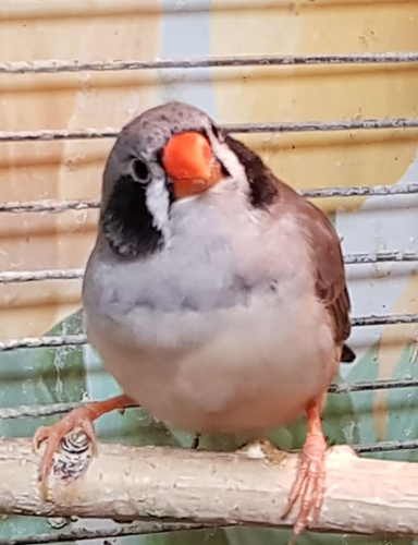 Земфира - крупная чернощекая серая самка щепная на черногрудых (желтое кольцо на левой лапке):